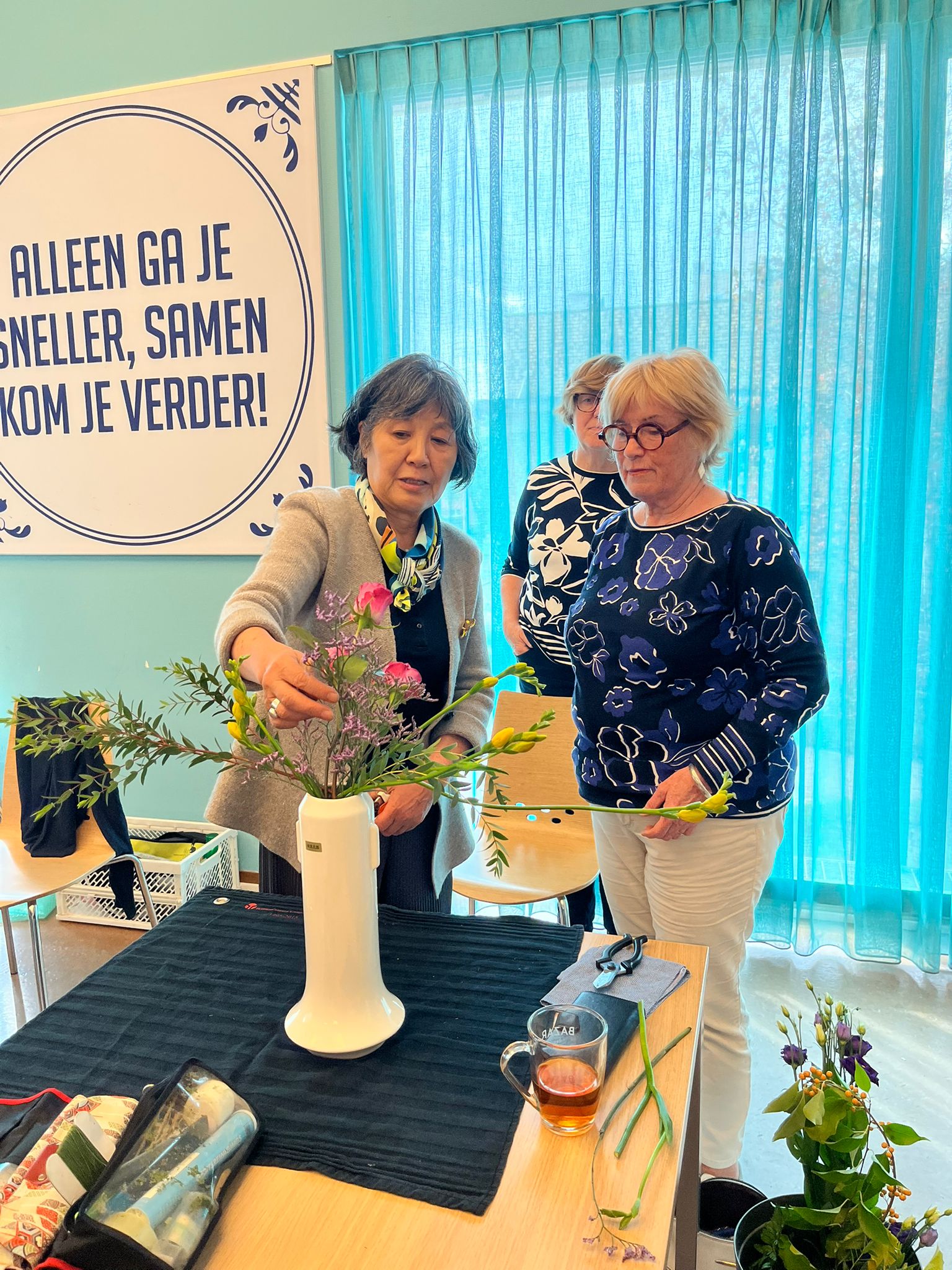 De dag werd om 16.00 uur afgesloten, met bewondering voor ieders werk en dankbaarheid voor de inspirerende begeleiding van Master Yans-Izumi. De combinatie van traditionele technieken, persoonlijke expressie en de warme sfeer maakte deze ikebanadag tot een waardevolle ervaring voor iedereen die erbij was.